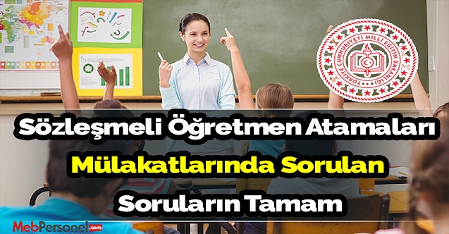 Bu haberimizde mebpersonel.net olarak geçmiş yıllarda sözleşmeli öğretmenlik mülakatlarında adaylara yöneltilen soruları sizler için düzenledik. İşte sözleşmeli öğretmenlik mülakatlarında çıkan soruların tamamı: