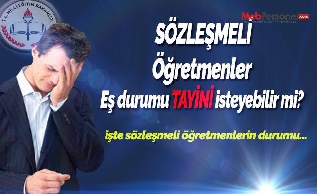 Milli Eğitim Bakanlığı’ndan ise her iki öğretmenin de sözleşmeli olması durumunda bir öğretmenin diğerinin yanına gitmesi ve aile bütünlüğü için ayrı bir çalışma yapabileceği de düşünülüyor. Fakat, bu durumun dışında herhangi bir sözleşmeli öğretmenin, kadrolu öğretmen eşi, esnaf eşi veya başka bir kamu kurum ve kuruluşunda görev yapan(mühendis, doktor, hemşire vb.) eşi ile diğer sektörlerde görev yapan eşi de ilgili sözleşmeli öğretmenin bulunduğu yere gelmek zorunda. Dolayısıyla tekrar ve defaatle ifade etmek gerekirse sözleşmeli öğretmenlerin aile planlamalarını yaparken ince eleyip sık dokuması gerekmektedir.