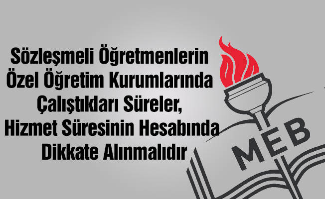 Milli Eğitim Bakanlığı sözleşmeli öğretmenlerin özel okullarda çalıştıkları süreleri hizmet sürelerinin hesabında dikkate alırken dershaneler, etüt merkezleri gibi özel öğretim kurumlarında çalışılan süreleri dikkate almamaktadır. Bu durum ise bugüne kadar sözleşmeli öğretmenlerin mağduriyetine sebebiyet vermiştir. Bu mağduriyetin ivedilikle giderilmesi gerekmektedir.