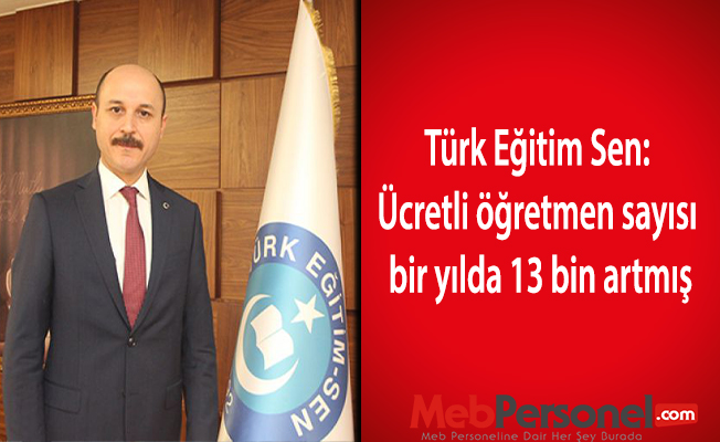 Türk Eğitim-Sen Genel Başkanı Talip Geylan, “Ülkedeki ücretli öğretmen sayısı 64 ilden gelen verilere göre, 76 bin 605. Ücretli öğretmen sayısında bir yılda 13 bin civarında artış tespit edildi.” değerlendirmesinde bulundu.