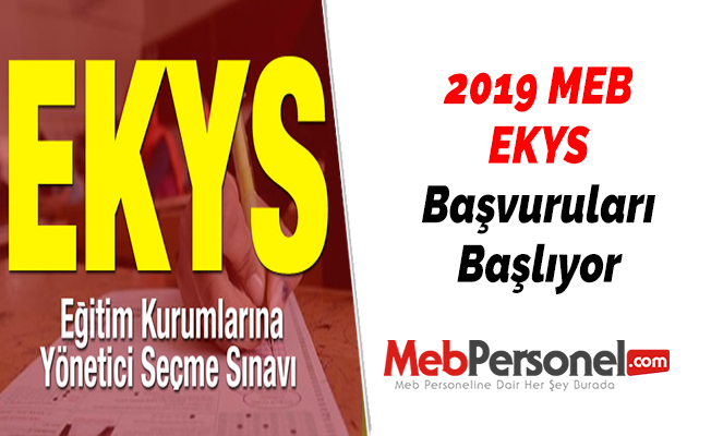 Milli Eğitim Bakanlığı (MEB) Eğitim Kurumlarına Yönetici Seçme Sınavı (EKYS) başvuruları başlıyor. Ölçme, Seçme ve Yerleştirme Merkezi’nden (ÖSYM) yapılan hatırlatmaya göre, başvurular 11 Mart’a kadar devam edecek. Sınav, 21 Nisan’da uygulanacak. Başvurular, elektronik ortamda ÖSYM başvuru merkezleri aracılığıyla veya bireysel olarak internet aracılığıyla ÖSYM’nin https://ais.osym.gov.tr adresinden alınacak. Sınava ilişkin ayrıntılı bilgi ‘2019 Milli Eğitim Bakanlığı Eğitim Kurumlarına Yönetici Seçme Sınavı (2019-MEB-EKYS)’ kılavuzunda yer alıyor.