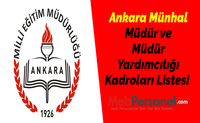 2019 Yılı Ankara Münhal Müdür ve Müdür Yardımcılığı Kadroları Listesi Mebpersonel.com’da…