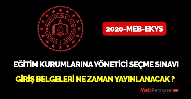 2020 Yılı Eğitim Kurumlarına Yönetici Seçme Sınavı (2020-MEB-EKYS) 15 Mart 2020 tarihinde saat 10.15’te yapılacak. Fotoğraflı Giriş Belgesi 9-15 Mart 2020 tarihleri arasında T.C. Kimlik Numaraları ve aday şifreleri ile ÖSYM’nin https://ais.osym.gov.tr internet adresinden edinebileceklerdir.
