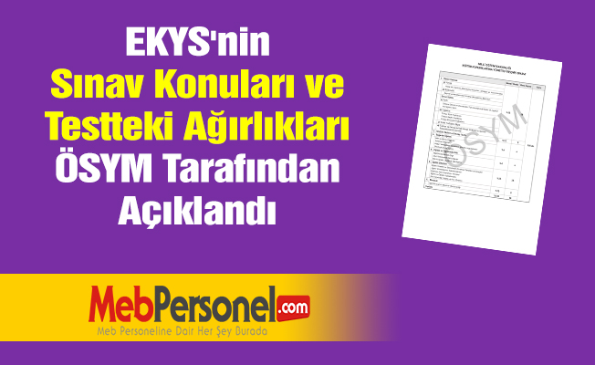 Eğitim Kurumlarına Yönetici Seçme Sınavı ÖSYM tarafından yapılacak. Yapılacak EKYS’nin Sınav Konuları ve Testteki Ağırlıkları ÖSYM Tarafından Açıklandı.