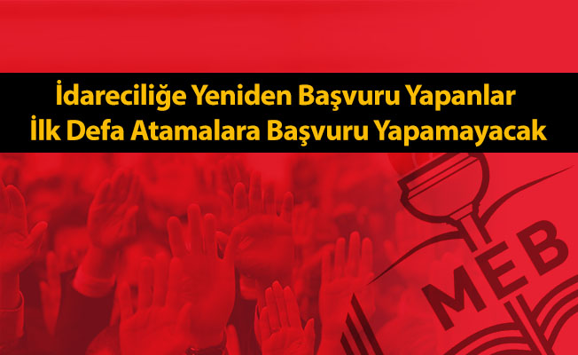 Yönetiicliğe Yeniden Görevlendirme Klavuzu C Maddesi 1. Fıkrası gereği idareciliğe yeniden başvuru yapan yani Ek1 değerlendrme formuyla kndi okuluna ya da başka bir okula başvuru yapanlar idareciler, İlk defa atamaya yani sınav puanyla atanmaya başvuru yapamayacaklar.