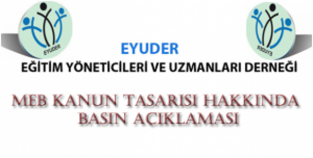 Eğitim Yöneticileri ve Uzmanları Derneği (EYUDER) Yönetim Kurulunca, son günlerde basına yansıyan ve Milli Eğitim Bakanlığı’nca hazırlanıp Bakanlar Kurulunca imzalandıktan sonra görüşülmek üzere TBMM’ye gönderilen “Milli Eğitim Temel Kanunu ile Bazı Kanun ve Kanun Hükmünde Kararnamelerde Değişiklik Yapılmasına Dair Kanun Tasarısı” hakkındaki aşağıdaki değerlendirmelerimizin kamuoyu ile paylaşılması uygun görülmüştür.