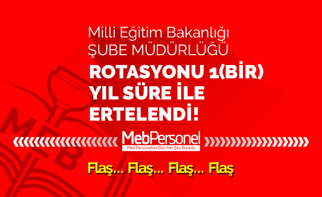 Milli Eğitim Bakanlığı Personel Genel Müdürlüğü tarafından Taşra Teşkilatı Yöneticilerinin 2019 Yılı Bölge Hizmetine Bağlı Yer Değiştirme İşlemlerine İlişkin Duyuru yayınlandı. Duyuruya göre rotasyon 1 yıl ertelenmiş oldu.