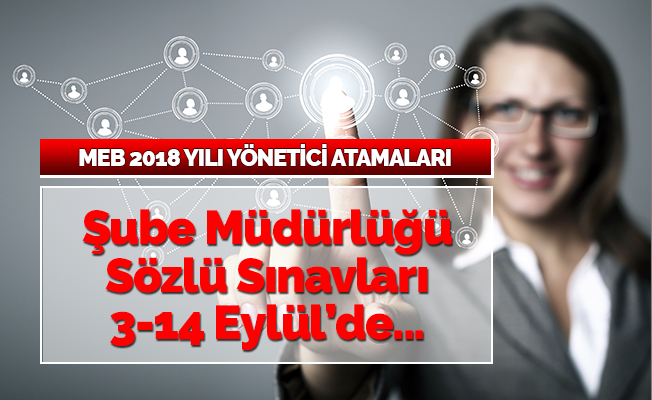 Milli Eğitim Bakanlığınca taşra teşkilatına 513 şube müdürlüğü için görevde yükselme sözlü sınavı 3-14 Eylül tarihlerinde yapılacak.