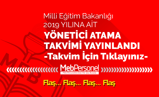 MEB’in yayınladığı 2019 yılı yönetici(okul müdürü, okul müdür yardımcısı, ) atama takvimi şöyle: