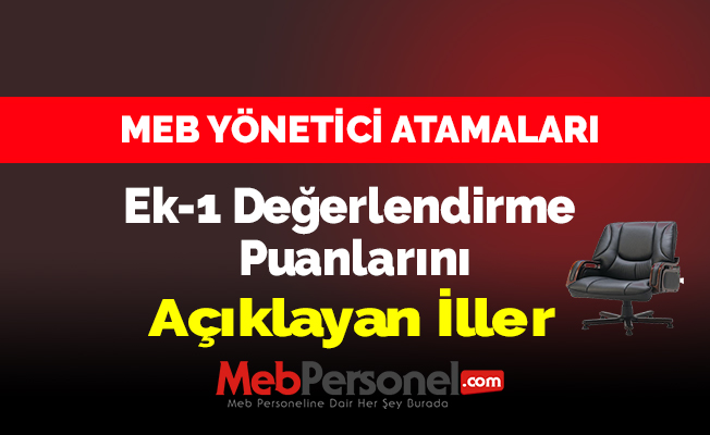MEB Yönetici Atamalarında Ek-1 Değerlendirme Puanlarını Açıklayan İller Güncel Liste Halinde Mebpersonel.com’da. Müdürlük, Müdür Başyardımcılığı ve Müdür Yardımcılığı İçin Ek-1 Değerlendirme Puanları Açıklanmaya Başladı. Ek-1 Değerlendirme Puanlarını Açıklayan İlleri Takip Ederek Güncel Liste Halinde Sizlerle Paylaşacağız.