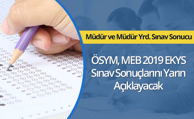 Milli Eğitim Bakanlığı(MEB), 2019 yılı müdürlük ve müdür yardımcılığı atamalarında yazılı sınav süreci yarın son bulacak. Eğitim Kurumlarına Yönetici Seçme(EKYS) yazılı sınavı 21 Nisan 2019 tarihinde ÖSYM tarafından yapılmıştı ve planlanan takvime göre yarın sonuçlar açıklanacak. Adaylar sonuçlarını ÖSYM aday işlemleri sisteminden kişisel şifreleri ile birlikte öğrenebilecek.
