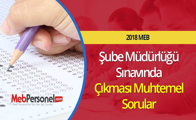 Şube müdürlüğü sınavında çıkması muhtemel sınav soruları ve cevapları MEB Şube Müdürlüğü Facebook grubumuzda her gün paylaşılıyor. Siz de grubumuza katılarak soruları ve cevapları görebilirsiniz.