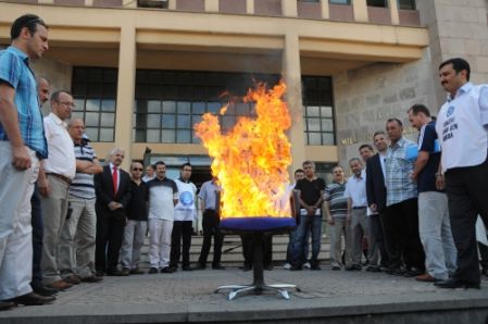 İşgal etmek için her şeyi feda ettiğiniz bu koltuklara tamah edecek ucuzlukta arkadaşlara sahip değiliz.” dedi.   Yanlarında getirdikleri ve üzerinde ‘Yandaşa mahsus müdür koltuğu’ yazan koltuğu yakarak milli eğitim müdürlüğüne iade edeceklerini belirten Türkoğlu şunları kaydetti: “Bu koltuğu size yakarak iade edeceğiz. Bu mülakatın da, yönetmeliğin hukuki zeminde peşini bırakmayacağız. Tüm arkadaşlarımız mülakat sonuçlarına itiraz edecek ve ardından mahkeme sürecini başlatacağız.”  Konuşmanın ardından Türkoğlu, yanlarında getirdikleri koltuğu benzin dökerek ateşe verdi. Kısa sürede alevlerin sardığı koltuğa Bursa Milli Eğitim Müdürlüğü çalışanları yangın söndürme tüpüyle müdahale etti. Koltuk, kullanılamaz hale geldi.