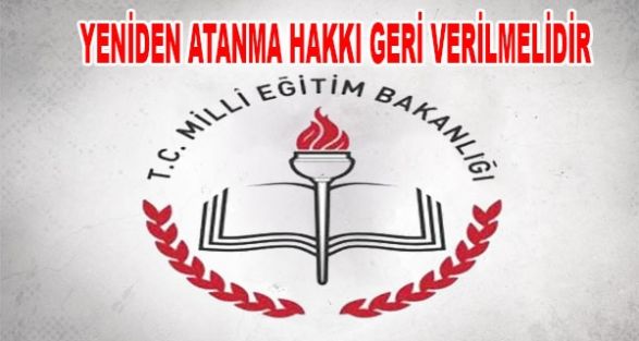 YENİDEN ATANMA MAĞDURLARININ SESİNE KULAK VERİLMELİDİR! 04/08/2013 tarihli Yönetici Atama Yönetmeliğinin yayımlanmasıyla birlikte eğitimin sorunları arasına “yeniden atanma mağdurları” konulu bir sorun daha eklenmiştir. Zira çeşitli sebeplerden ötürü ki bu sebeplere çocuklarının öğrenimi veya ailevi nedenlerle zorunlu il değiştirmelerde dâhil olmak üzere yöneticilik görevlerinden ayrılmış eğitim yöneticileri bu yönetmelikle göz ardı edilmiştir.