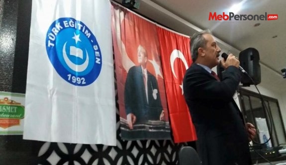 Mukaddes davalarda ölüm bile güzeldir’ diyerek, Türk Eğitim-Sen’e gönül veren dava adamlarının üye olduğu sendikadır. Türk Eğitim-Sen, kasabın bıçağını yalayan koyunların bulunmadığı sendikadır. Türk Eğitim-Sen gururla ‘Ne mutlu Türküm diyene’ diyenlerin sendikasıdır” diye konuştu.